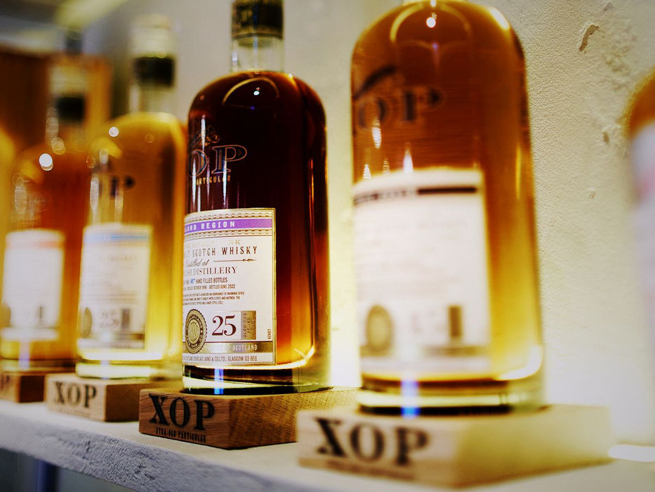 내부는 폴리시드 마이크로시멘트 마감, 월넛 베니어 가구, 커스텀 백라이트 선반의 조합으로 미니멀하면서도 갤러리 같은 분위기를 연출한다. 후면의 디지털 아트 디스플레이는 색채와 움직임을 더해, 위스키 제조의 예술성과 감각을 상징적으로 드러낸다.