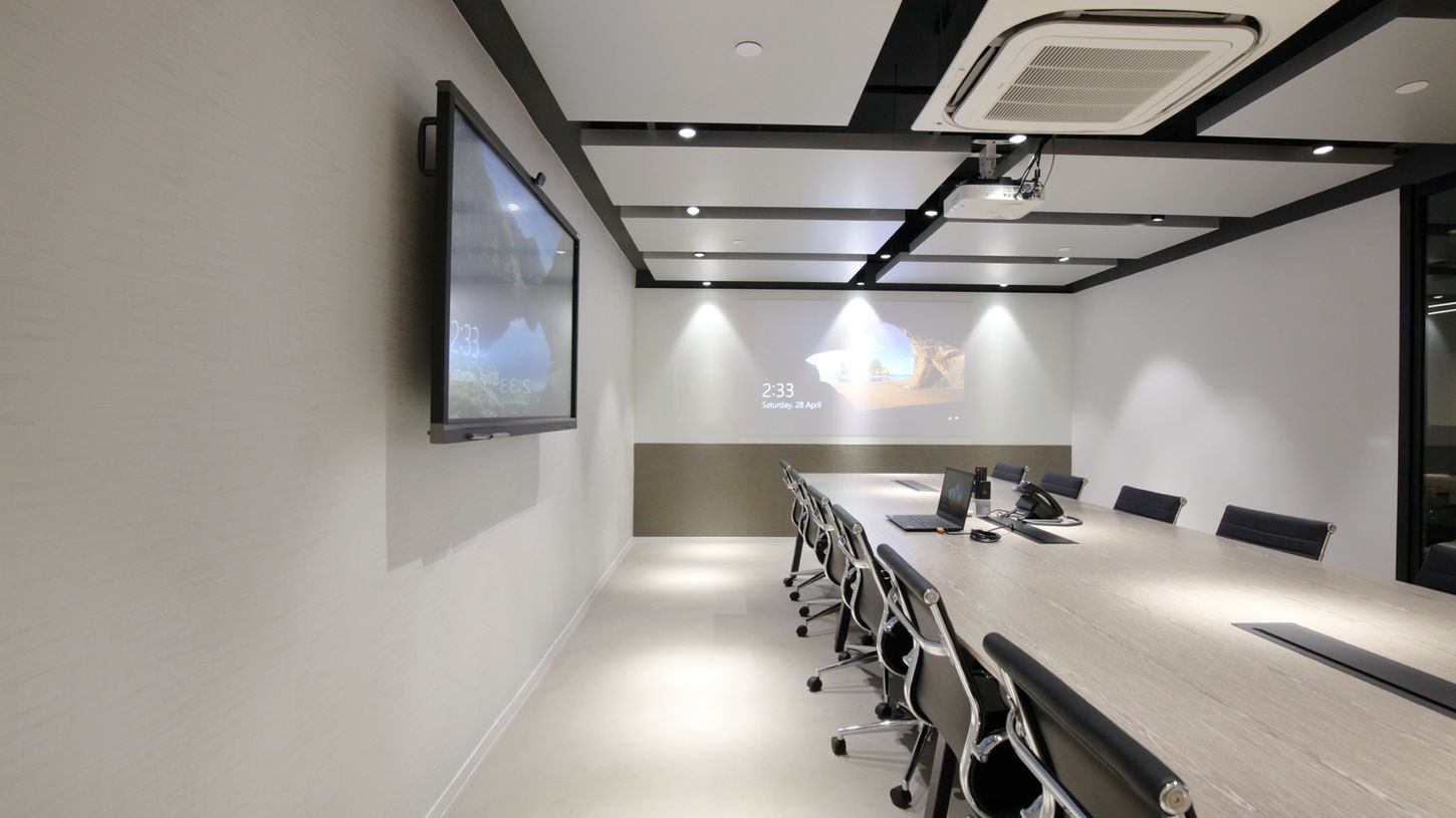 The workplace was planned to maximize transparency and collaboration. Glass partitions were used extensively, creating a sense of openness and allowing daylight to flow deep into the office. Circulation routes were designed for efficiency, ensuring smooth movement between reception, meeting rooms, open work areas, and support spaces. An open-plan workstation zone anchors the floor, flanked by meeting rooms and private offices for acoustic control, while communal spaces, such as the pantry and breakout areas, encourage informal interaction.
